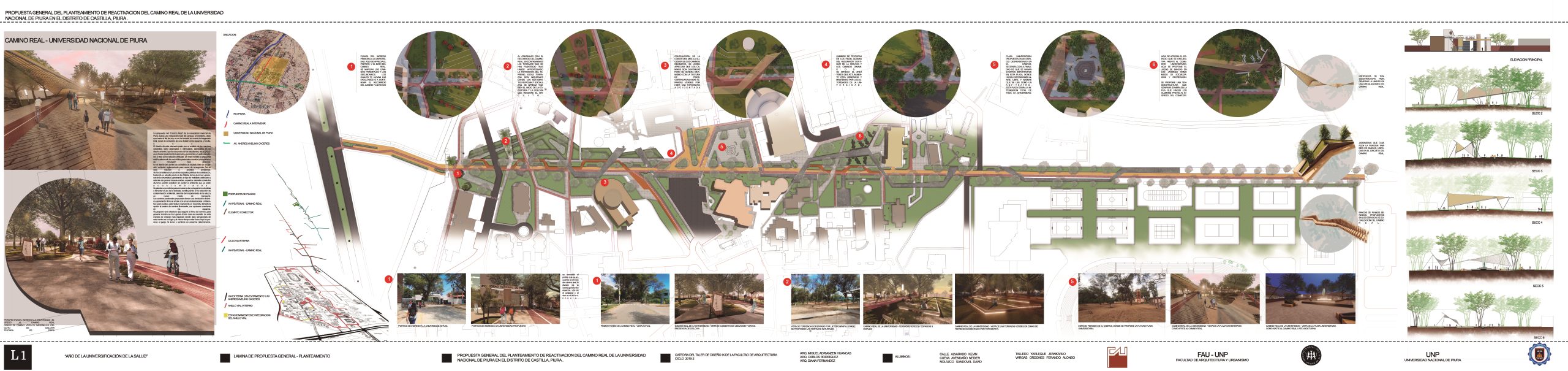 Estudiantes de la Facultad de Arquitectura y Urbanismo de la Universidad Nacional de Piura, presentaron dos proyectos de Diseño Arquitectónico VI sección II y III de Responsabilidad Social Universitaria (RSU) con el propósito de plantear alternativas de acción para su reforzamiento que permitan estrechar las relaciones entre esta casa superior de estudios y la comunidad piurana.